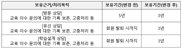 [개인정보의 처리 및 보유기간 변경]